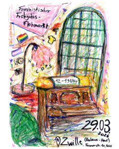 - 29.03.2026, Feministischer Frühjahrs Flohmarkt, ZwilleFeministischer Frühjahrs Flohmarkt | 29.03. | 12-19 Uhr /// Hi ihr Lieben! Es grünt und blüht schon ein bisschen, und deswegen möchten wir am 29.3 einen Flohmarkt in der @zwillecafe.tub, bei… 29.03.2026, Feministischer Frühjahrs Flohmarkt, Zwille weiterlesen