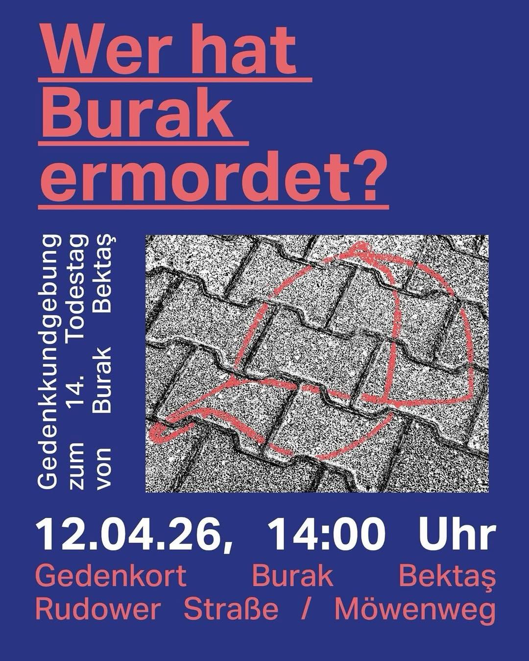 12.04.2026, Wer hat Burak ermordet? Schluss mit der Straflosigkeit! Kundgebung zum 14. Todestag, Gedenkort Burak Bektaş