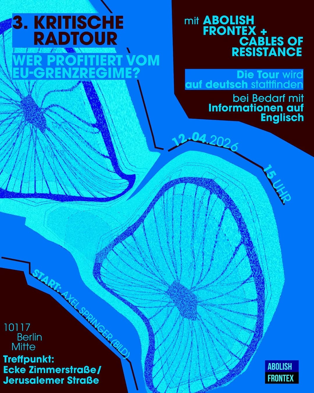 Mit einer Radtour wollen wir einige dieser Profiteure des EU-Grenzregimes nin der Innenstadt ausfindig machen und aufzeigen, welche Rolle sie in diesem gewalttätigen System spielen.