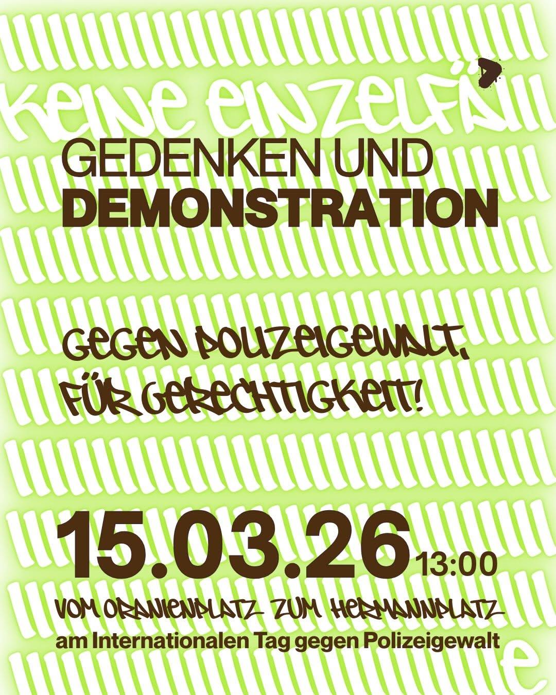 📍Gedenken ab 13:00 am Oranienplatz, ab 14:30 Laufdemo zum Hermannplatz