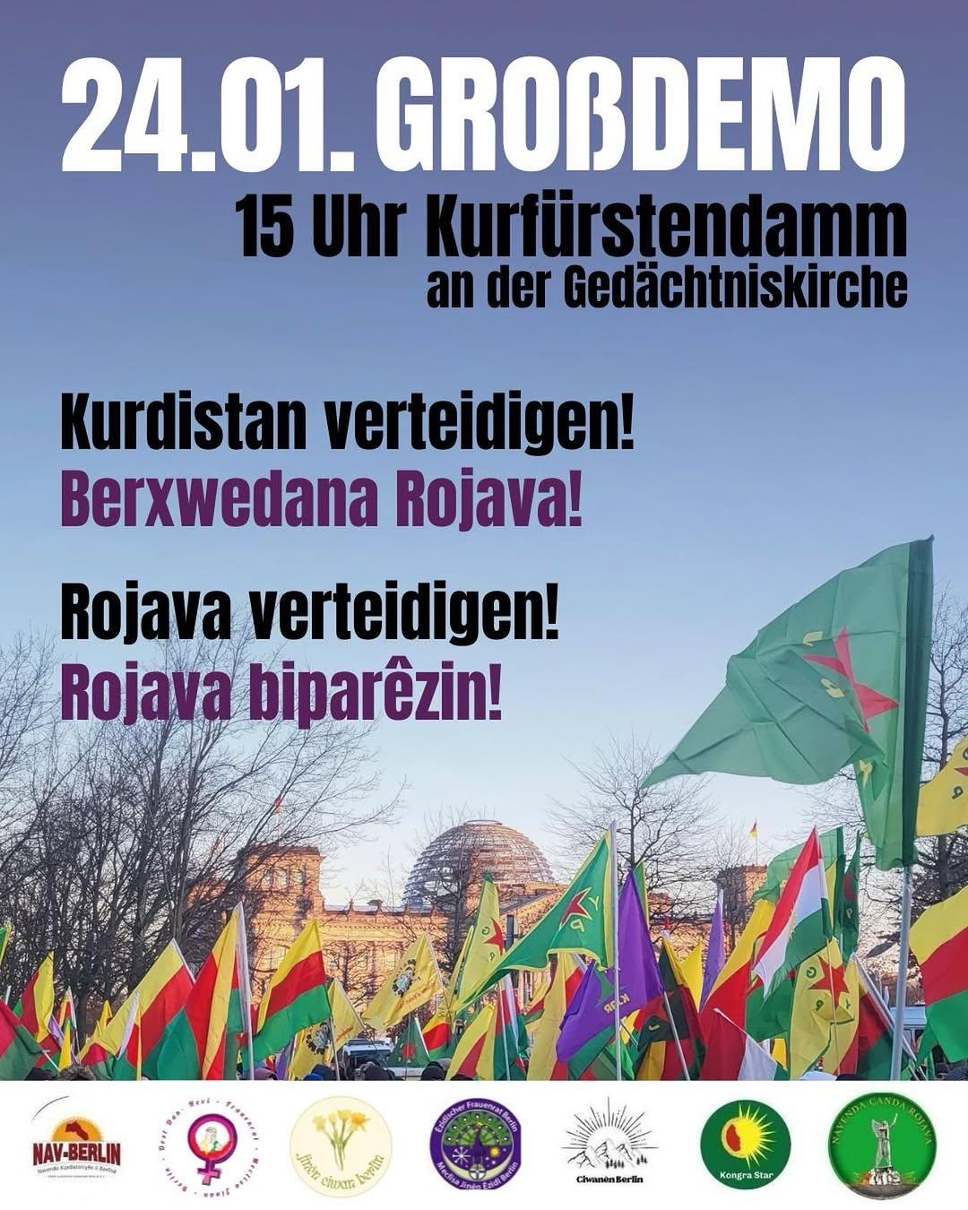 24.01.2026 – Großdemo – Kurdistan verteidigen! Berxwedana Rojava! Rojava verteidigen! Rojava biparêzin!