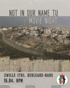 - 15.04.2026, Not in Our Name Movie Night- Dokumentaries on Israeli Apartheid, in Zwille