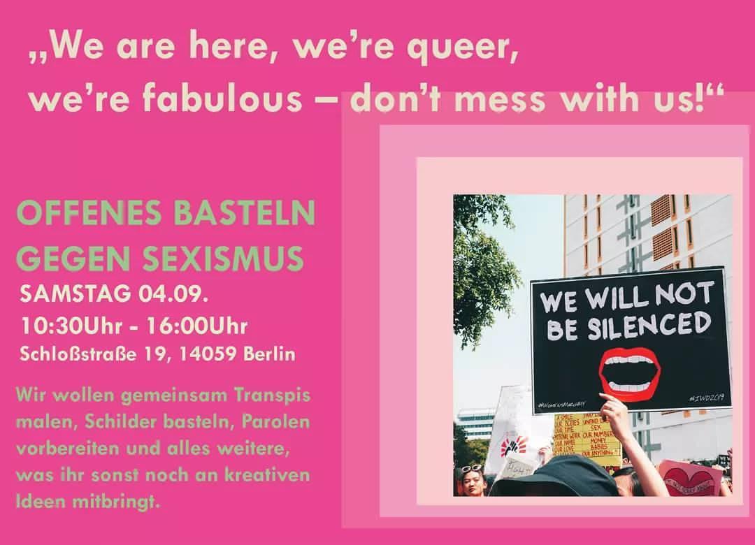 Deshalb wollen wir uns zusammen mit euch verschiedene Perspektiven des queer-feministischen Kampfes anschauen und selbst das Straßenbild gestalten.