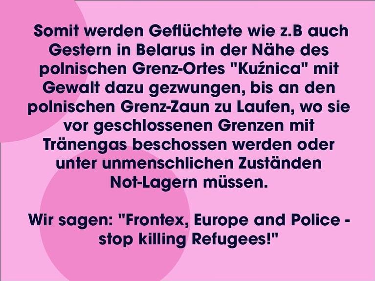 Auch in Europa und insbesondere in Polen verdienen die streikenden FLINTA*, sowie all jene, deren Rechte durch die neuen Gesetze vollständig beschnitten wurden unsere volle Solidarität und alle Kraft, denn dort zeigt sich die fundamentale Grausamkeit der Kirche und die dringende Notwendigkeit einer Gesellschaft frei von männlichen Machtansprüchen.