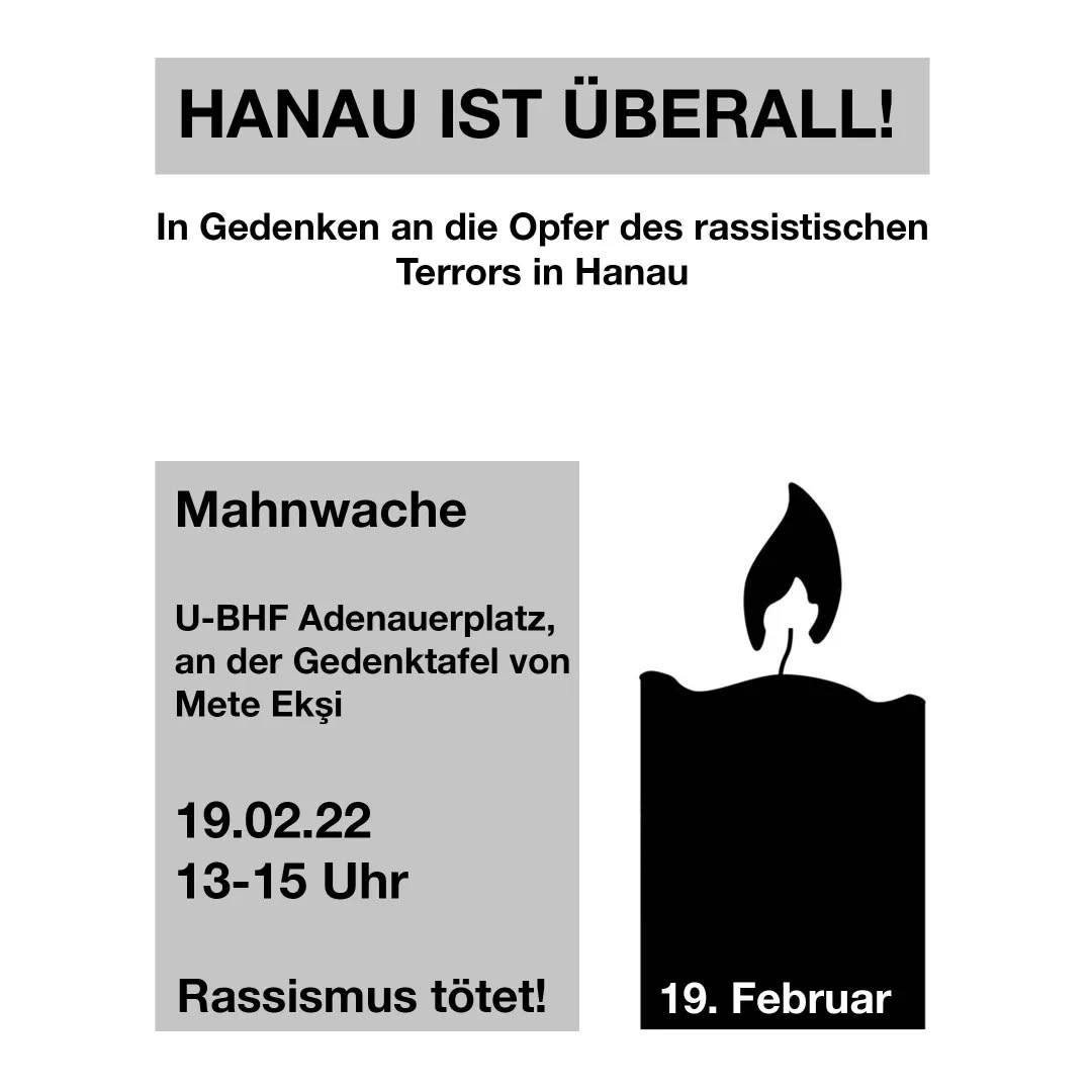 Dafür organisieren wir eine Mahnwache auf dem Adenauer Platz bei dem Gedenkstein für Mete Ekşi, von 13-15Uhr am 19.02.