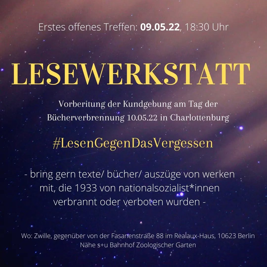 Kommt am Tag der Bücherverbrennung (10.05.1933) mit uns zur Kundgebung in die Pestalozzistraße!