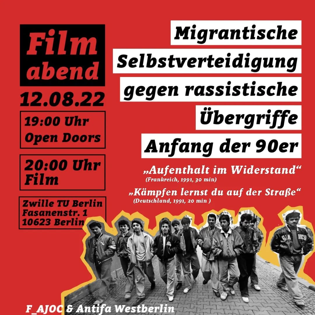 12.08.2022, Filmabend: Migrantische Selbstverteidigung gegen rassistische Übergriffe Anfang der 1990er