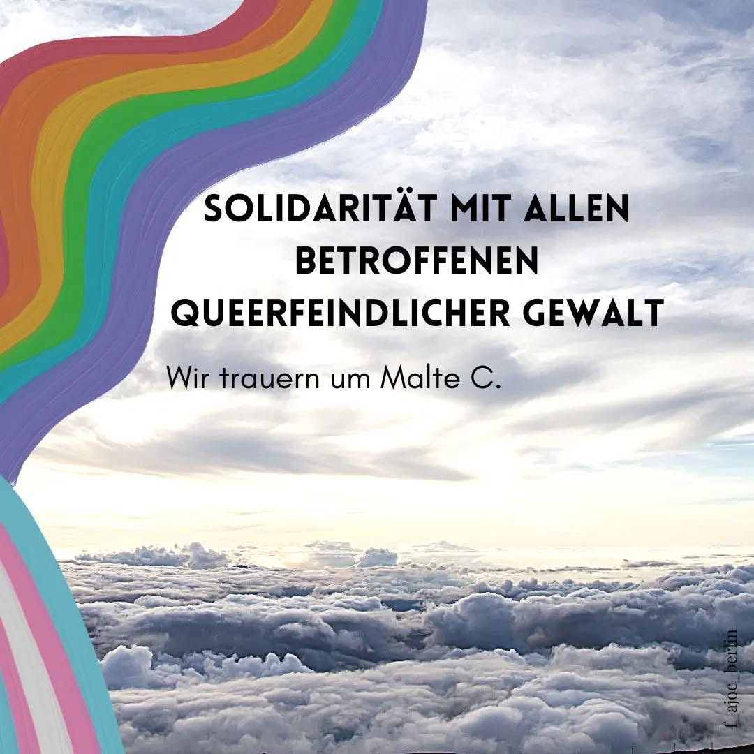 Wir trauern um Malte C. und solidarisieren uns mit allen LGBTQ+, die direkt oder indirekt jegliche Art von Gewalt erleben oder davon bedroht sind.