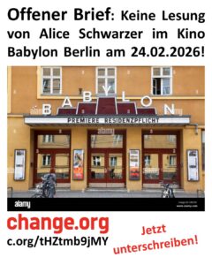 - Offener Brief: Keine Lesung von Alice Schwarzer im Kino Babylon Berlin am 24.02.2026!