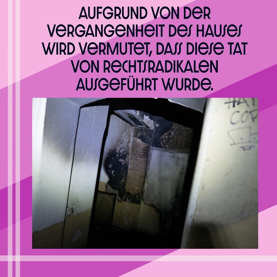 Aufgrund der Vergangenheit des Hauses wird vermutet, dass diese Tat von Rechtsradikalen ausgeführt wurde, denn das Haus ist unter Rechten in Spandau bekannt; so wurden die Bewohner:innen des Hauses in den vergangenen Wochen häufiger mit Schmierereien der durch den Nationalsozialismus geprägten Parole „Arbeit macht frei“ und von vor der Tür wartenden Neo-Nazis belästigt. Die Täter:innen versuchten, durch das Anzünden des Treppenhauses, das gesamte Haus in Brand zu setzen und nahmen dabei bewusst in Kauf, die im Haus wohnenden Menschen schwer verletzen oder gar töten zu können. Dieser Brandanschlag hätte zum Tod vieler unserer Freund:innen und allen weiteren im Haus wohnenden Menschen führen können.