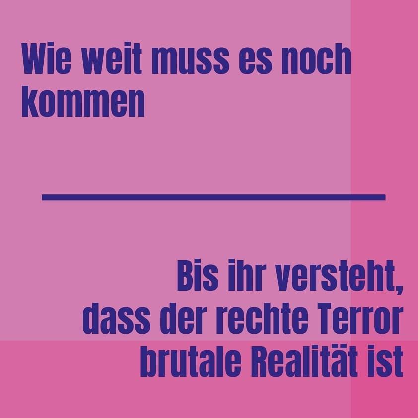 Rechter Propaganda und Gedankengut darf keine Platz in unserer Gesellschaft oder unseren Köpfen geboten werden. Die ausgebliebene Entnazifizierung zwingt uns alle zum aktiven Widerstand durch Haltung und Aufklärung, um weitere menschenverachtende Anschläge verhindern zu können.